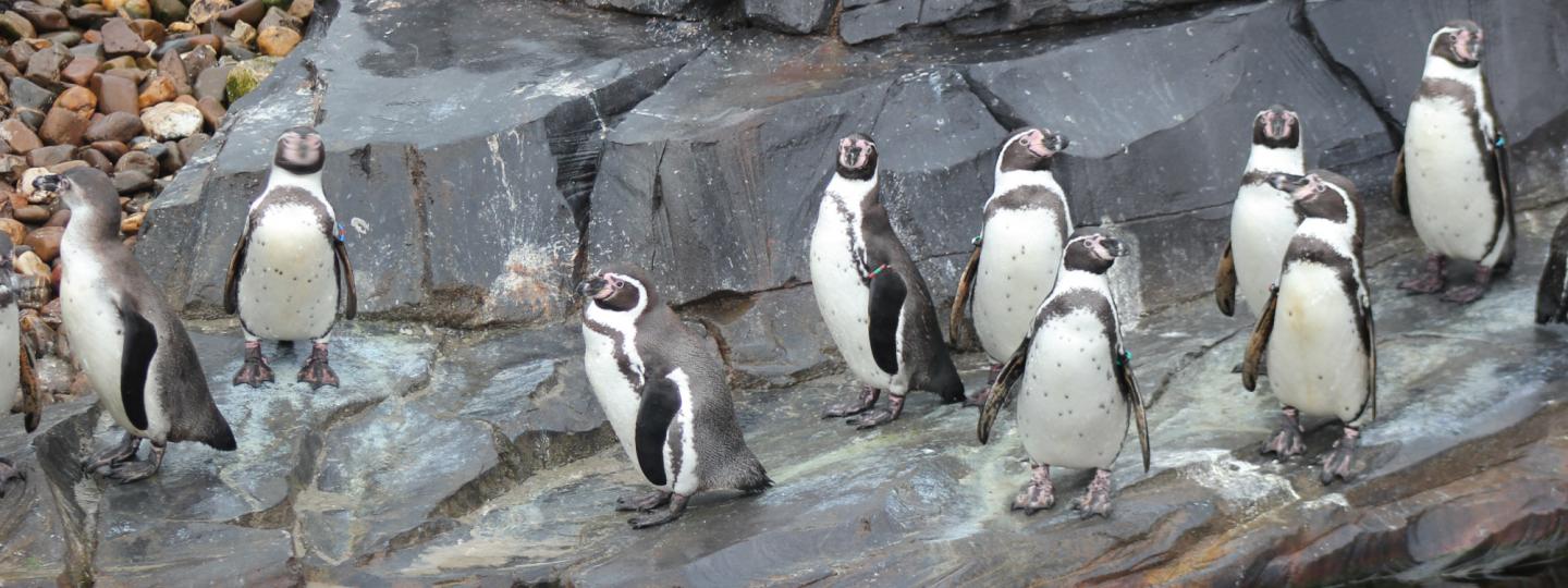 Der Pinguin ist zwar ein Vogel, er kann jedoch nicht fliegen, zumindest nicht in der Luft. Schauen Sie aber in der Erlebniswelt Nortica durch das Periskop, so sehen Sie, wie anmutig sich diese Tiere unter Wasser fortbewegen, fast wie ein Vogel in der Luft. Sie benutzen ihre Flügel als Paddel und gleiten mit ihren stromlinienförmigen Körpern elegant durch das Wasser. Laufen ist etwas beschwerlicher: Wer kennt nicht den lustigen Watschelgang der Pinguine! Lieber gleiten diese Tiere auf ihrem Bauch über die Abhänge, da fühlen sie sich in ihrem Element. Passen Sie am Pinguinstrand gut auf kreuzende Pinguine auf: Die Tiere haben immer Vorfahrt!